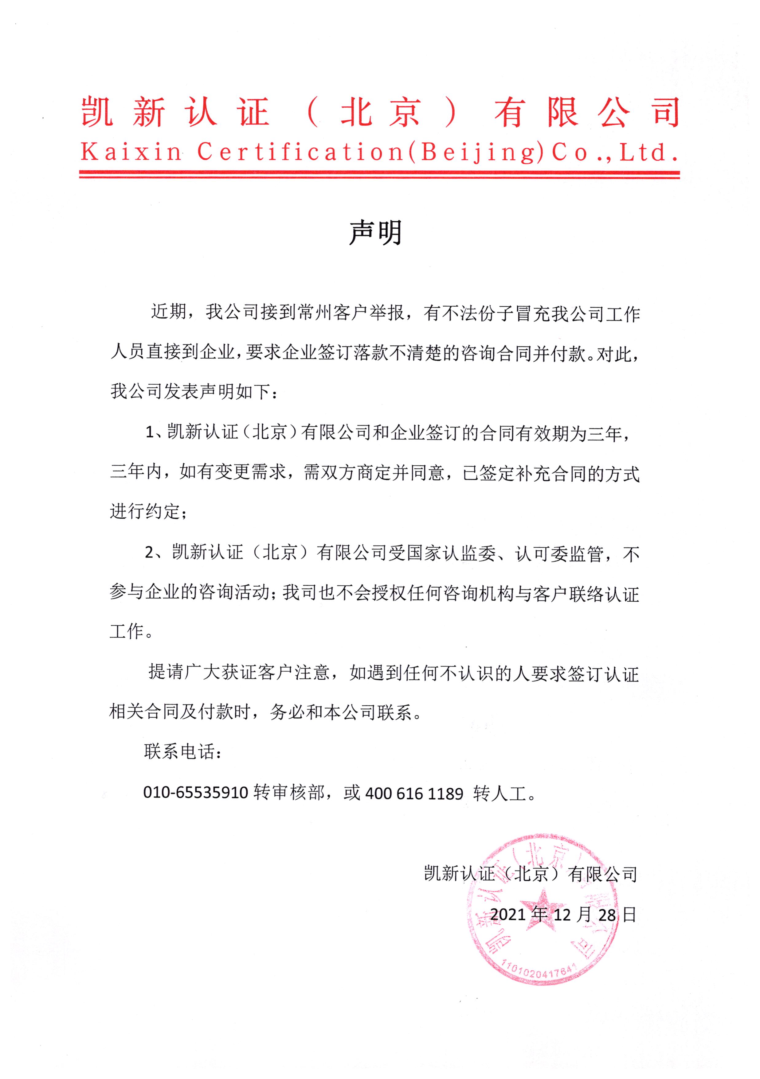 感謝您對凱新認證(北京)有限公司(以下簡稱KCB)的信任與支持,選擇KCB為您提供認證服務252022-03